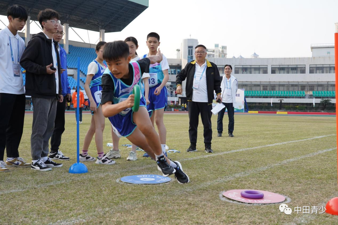 本次少儿田径全能挑战项目要求运动员在200米的赛道内,从起点出发以跑、跳、投的方式进行12个田径项目挑战后到达终点,以完赛时间作为成绩判定标准。来自省内11所小学的运动员参加了少儿田径项目,在赛场上尽情挥洒汗水,奋勇拼搏,绽放青春风采,中田体育培训(海南)有限公司为该项目提供了技术指导及器材支持。比赛器材使用了中国田径协会少儿田径合作伙伴与器材官方供应商田联阳光品牌器材。