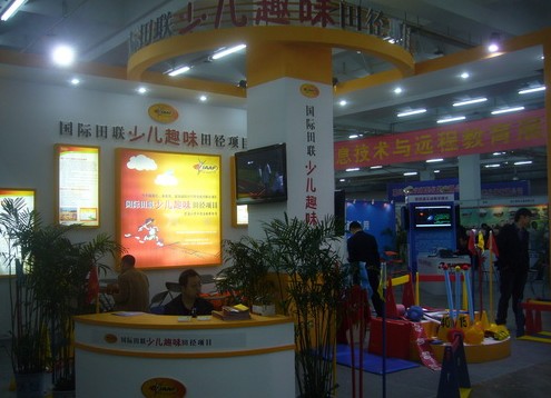 图为:国际田联少儿趣味田径展位