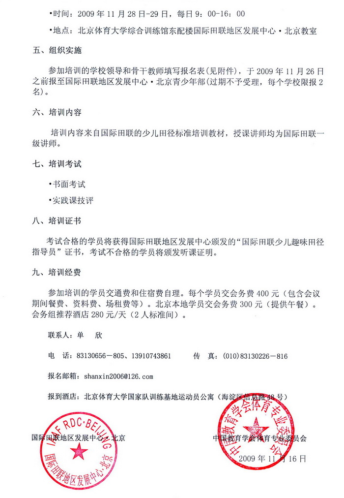 第三届国际田联少儿趣味田径指导员培训班会议通知