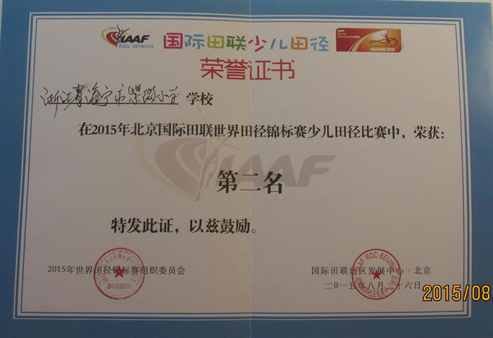 能在全国小学生田径比赛上亮相,一直是每个紫微田径人追求的梦想。2015年8月24日至26日,由国际田联、北京田径世锦赛组委会、国际田联地区发展中心•北京主办的“北京国际田联世界田径锦标赛少儿田径比赛”在北京奥林匹克中心“奥林匹克公园”举行,紫微小学作为浙江省唯一的一所学校参加了本次比赛。