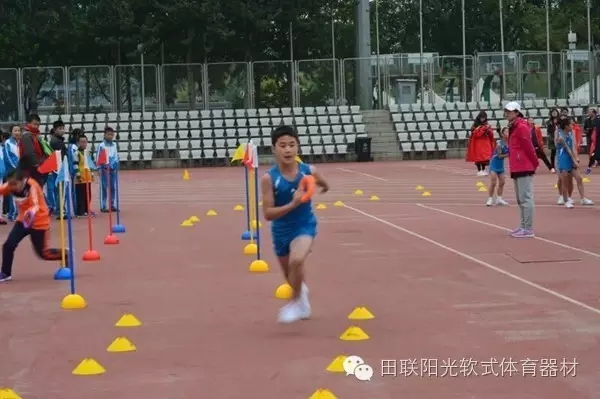 上午九时,比赛正式开始,尽管当日气温较低,但丝毫不影响小参赛队员们的参与热情,本届运动会采用了国际田联和国家体育总局最新颁布《少年儿童田径竞赛指导竞赛意见》中推荐的国际田联少儿趣味田径项目和软式体育器材,为小学组设置了一级方程式、短跨接力、速度阶梯、十字跳、撑竿跳远、投掷软式标枪、越过障碍掷准、8分钟耐力跑等八个团体比赛项目,涵盖了田径中的跑、跳、投等基本技能,巧妙地将田径项目的趣味性和体育精神相融合。