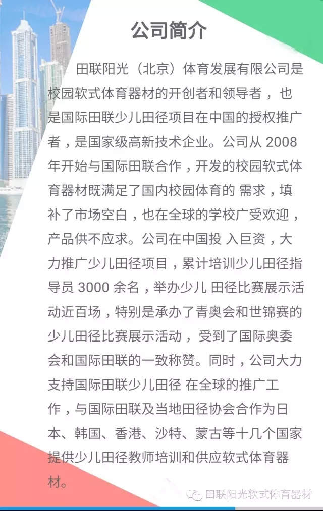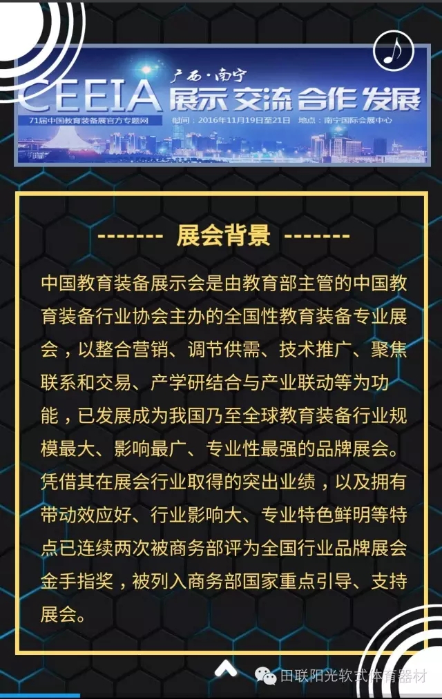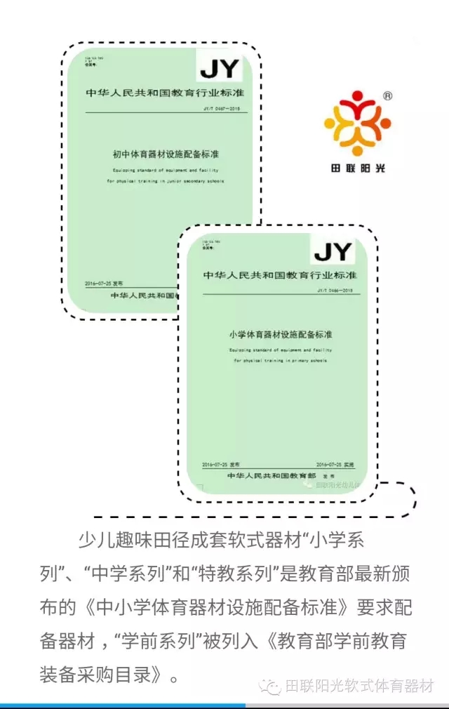 田联阳光(北京)体育发展有限公司将携教育部最新颁布的《中小学体育器材设施配备标准》要求配备器材“少儿趣味田径成套软式器材”亮相第71届中国教育装备展 ,期待您的莅临参观!