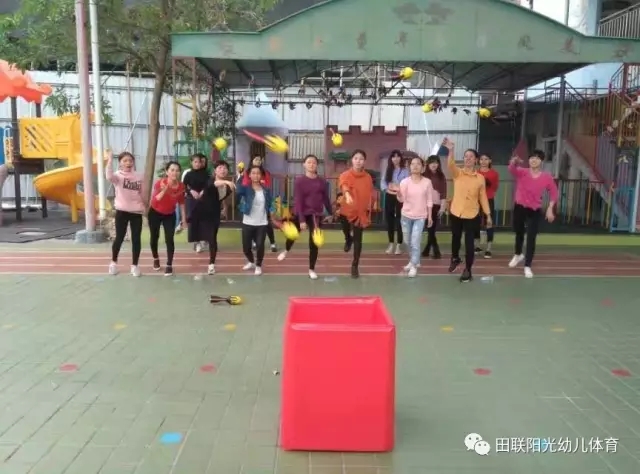 近日,在广东揭阳凤美幼儿园,一群年轻的幼儿老师,一批五颜六色的软式体育器材,让周末安静的幼儿园瞬间沸腾了起来,来自田联阳光的培训讲师带着90后的幼儿老师们一起进行了“田联阳光幼儿体育”的实践培训。