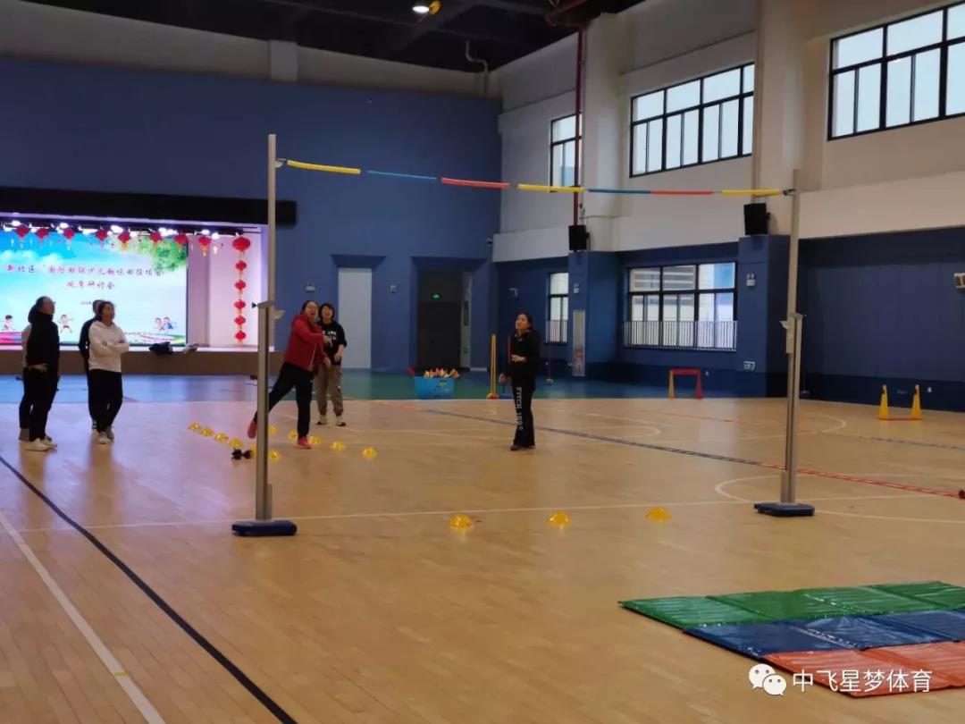 大课间活动结束后,在室内篮球场展开了少儿趣味田径课例观摩活动。