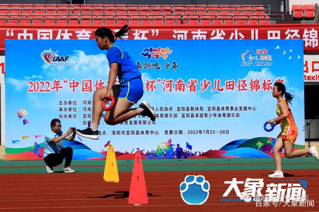 7月24日,2022年“中国体育彩票杯”河南省少儿趣味田径锦标赛在河南省宜阳县体育中心拉开帷幕。来自全省300余名小学生分别代表10支队伍参加软式标枪、撑杆跳远、短跑跨栏接力、一级方程式等8个田径项目的角逐。